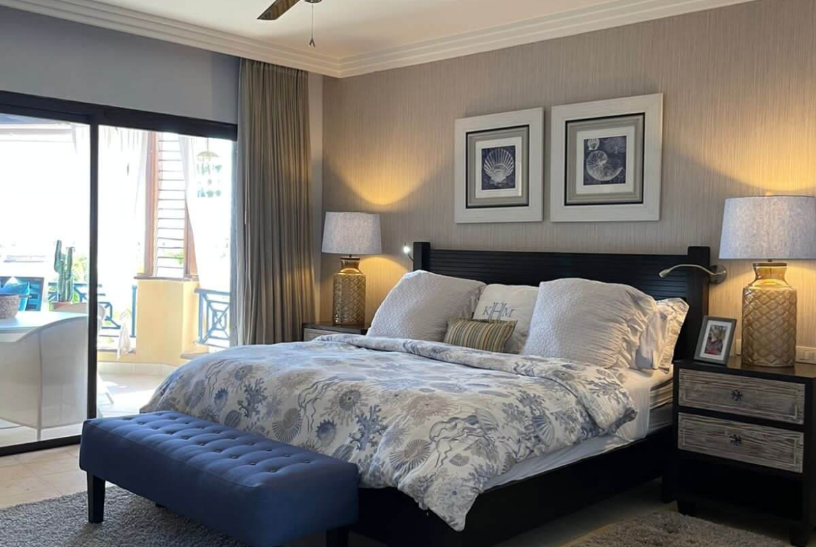 Espectacular apartamento ubicado en la Marina de Cap Cana, con espectaculares vistas. Tres balcones, uno frontal y otros dos en los dormitorios.