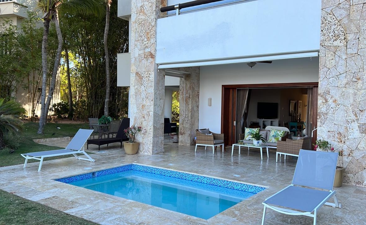 Apartamento en Golden Bear Lodge, Cap Cana, este encantador apartamento en el Golden Bear Lodge, ubicado en el primer nivel, ofrece una experiencia de confort en Cap Cana. Con una distribución cuidadosamente diseñada, el apartamento cuenta con 3 habitaciones y 3 baños y medio, brindando espacio y privacidad para todos los residentes.