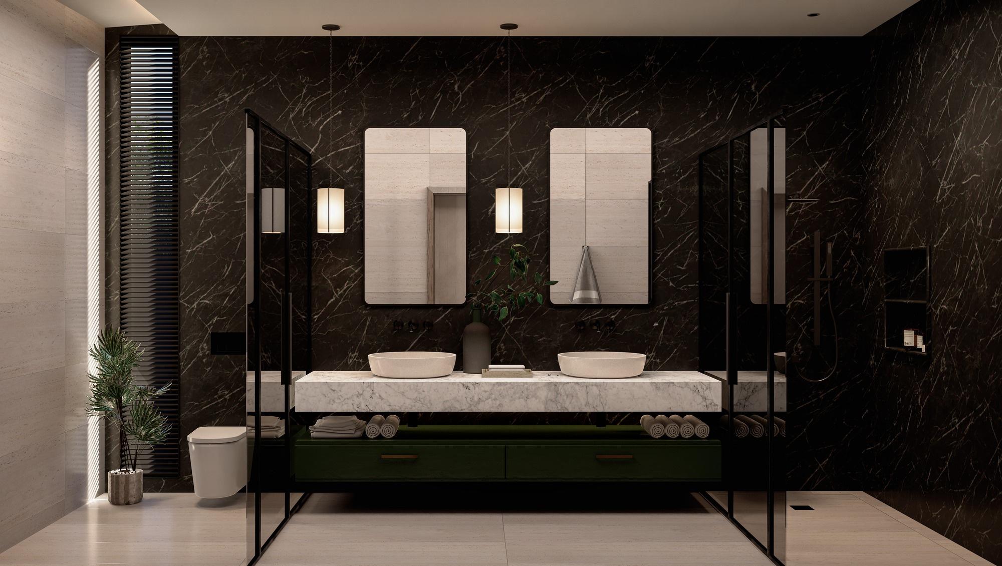• 4 baños completos, con lavabo doble.