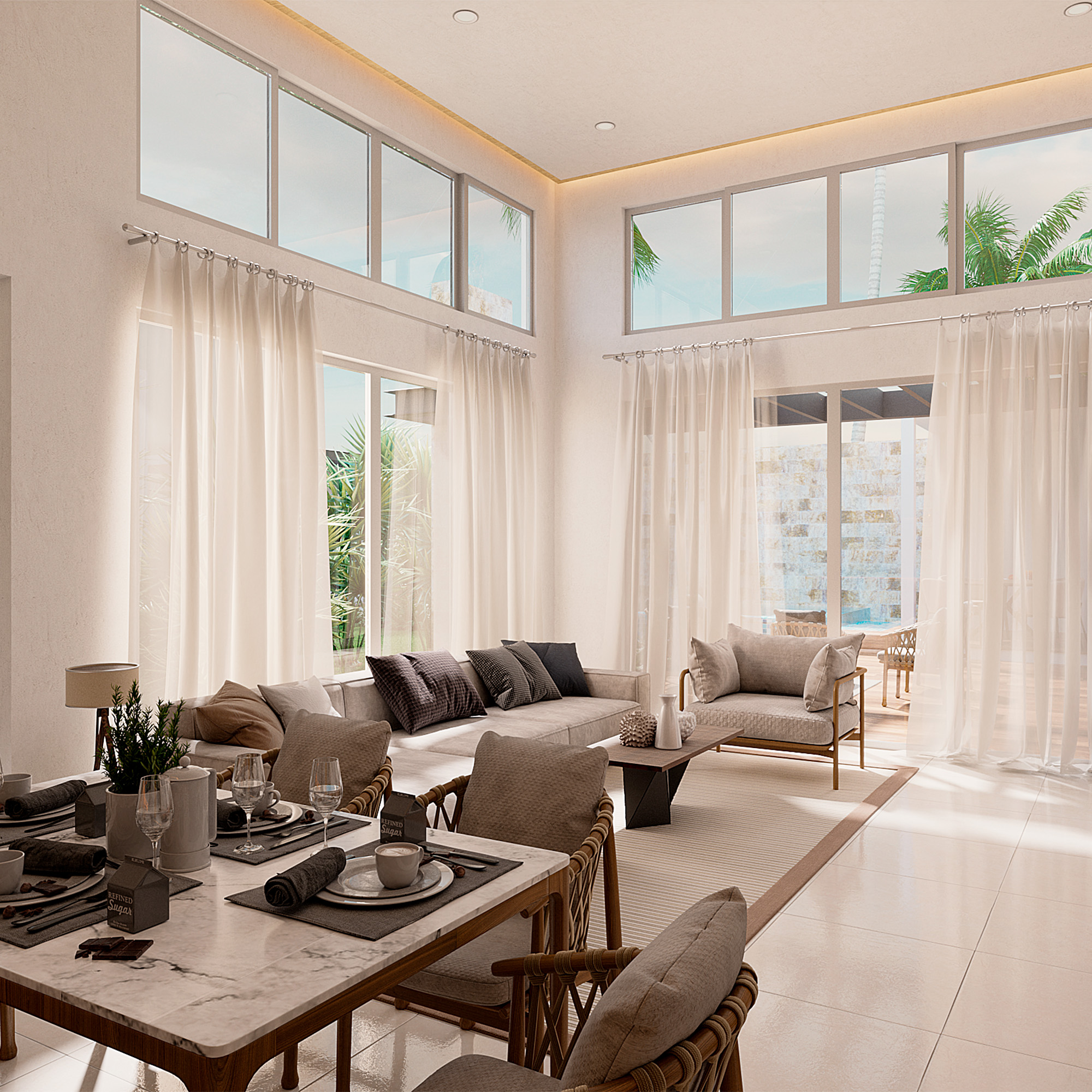 Cada villa está diseñada para ofrecer el máximo confort y funcionalidad. Con opciones de 2 y 4 habitaciones, todas con su baño privado, cada residencia garantiza privacidad y comodidad. Además, cada villa incluye una espaciosa sala, un elegante comedor, una cocina moderna y algunos de los modelos con un estudio familiar.