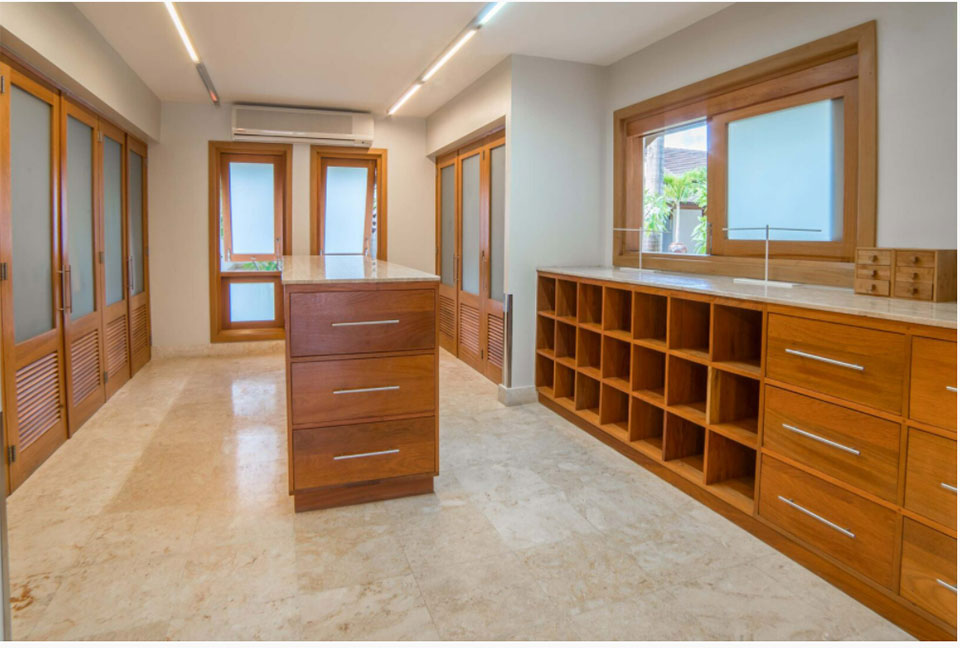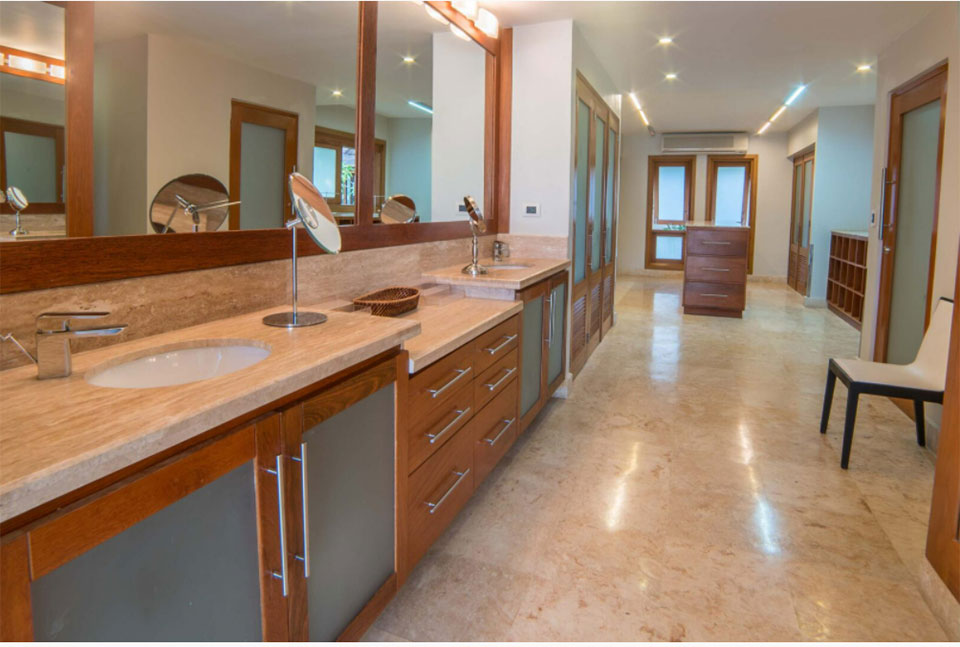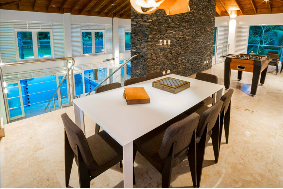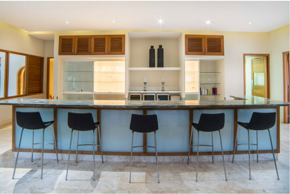 The indoor and outdoor living and dining areas cater for informal dining, formal dinners and long, lazy lunches. The villa has an air-conditioned formal dining room, a breakfast bar area with stools, three outdoor dining tables and an outdoor barbecue gazebo. Sip a cocktail or enjoy an ice-cold beer and watch one of Casa de Campo’s spectacular sunsets from the villa’s third-floor rooftop terrace.
