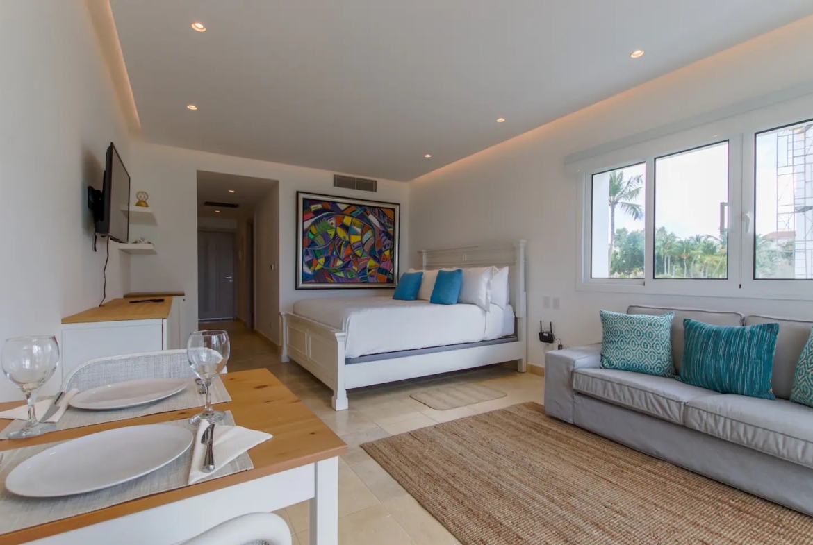 Disfruta unos días en este acogedor apartamento tipo estudio ubicado a solo unos pasos de la playa en Cap Cana Ciudad Destino.
