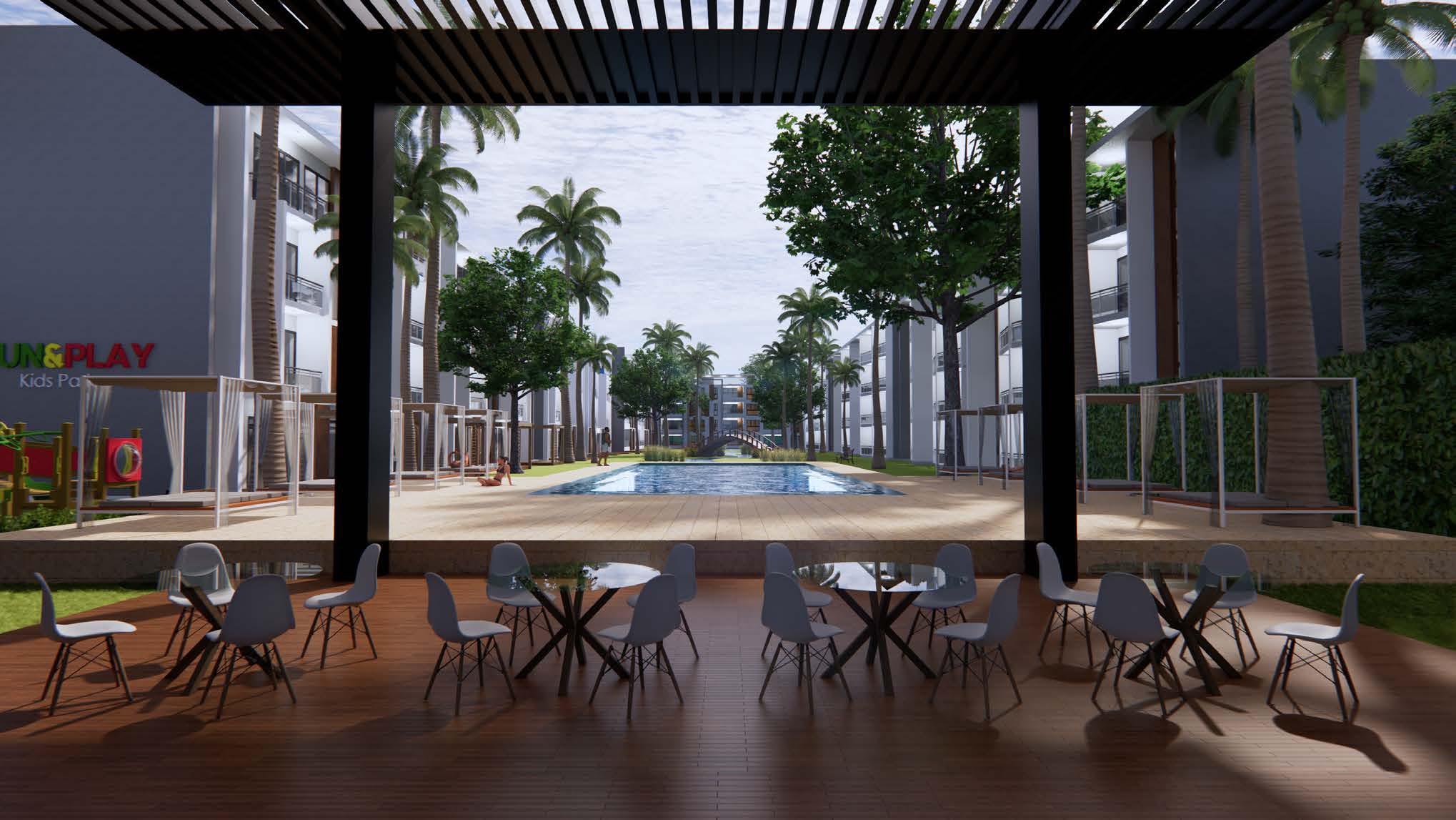 Integrando un exclusivo Lobby Hotelero y edificios de 4 niveles con ascensores de última generación, manteniéndonos a la vanguardia del mercado sumando valor en su arquitectura junto a un ambiente vibrante y distinguidamente caribeño.