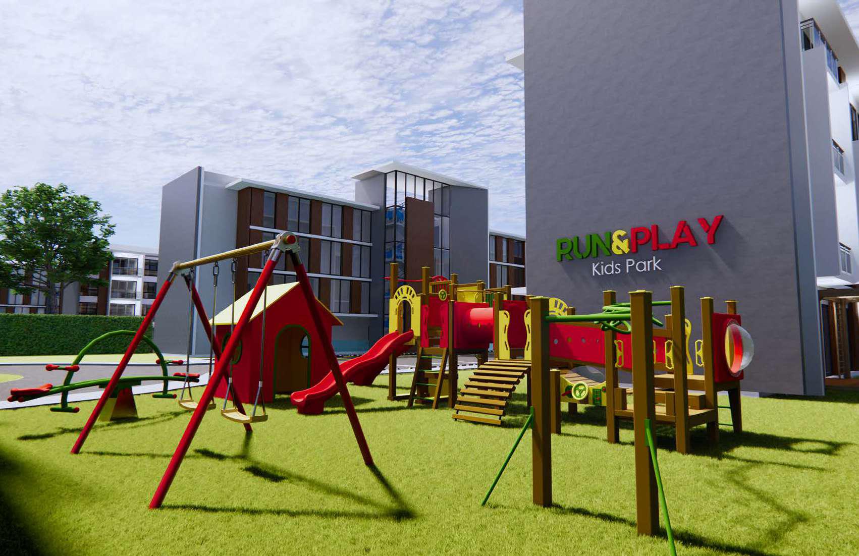 Run & Play, Kids Park es un área que se instalará para los mas pequeños de la familia dentro de nuestro parque central destinada a esas horas de juego donde los niños puedan divertirse’y dejar libre a u imaginación con los espacios naturales y los juegos instalados, donde su creatividad podrá expandirse.Terminación
