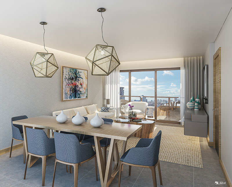 Unidades de apartamentos de 88m2, 116m2, 123m2 y 1332 de construcción, con vista a la ciudad o al mar dependiendo de la unidad.