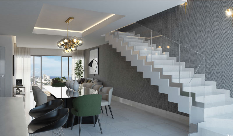 Dúplex desde los 174m2 hasta los 251m2 de construcción con terrazas, baños en cada habitación y estudio en las unidades que aplican.