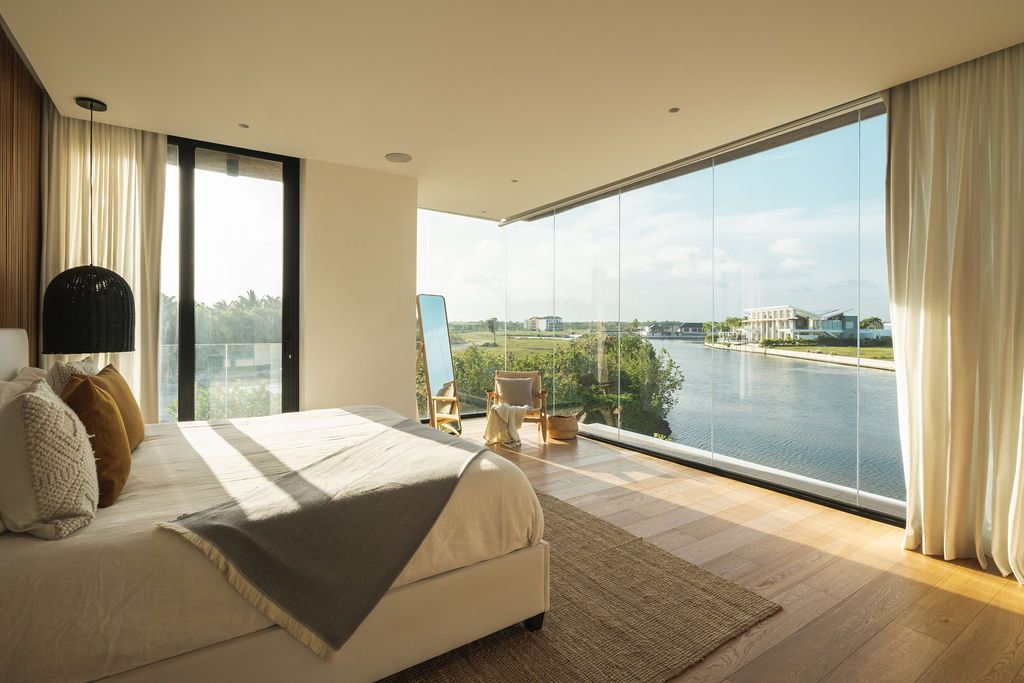 Dormitorio 1: cama principal King, baño privado con ducha independiente, ducha de lluvia, tocador doble, vestidor, televisión, aire acondicionado, vista de Cape Cana Marina.