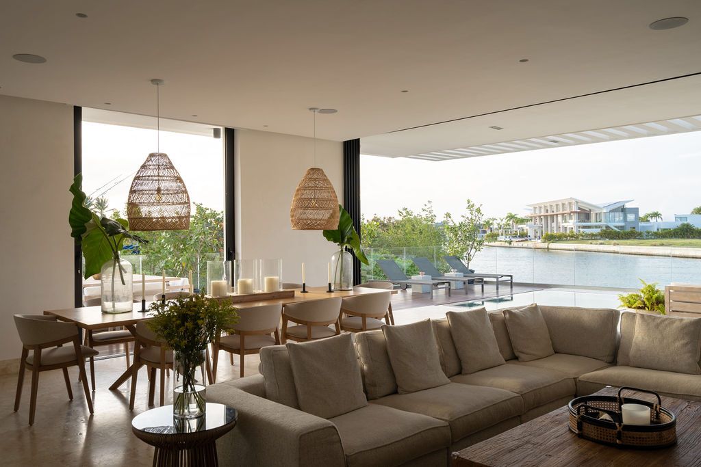 La fachada está regida por azulejos de coralina blanca y al entrar una cocina totalmente equipada con sobre de cuarzo le da la bienvenida lista para preparar las comidas dominicanas más tradicionales. Junto a la sala de estar, las maravillosas vistas al agua invitan al exterior a relajarse y disfrutar del entorno.