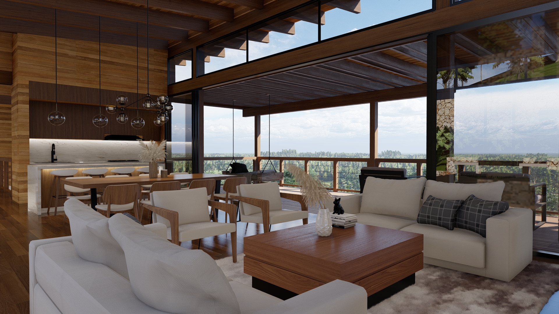 • 4 habitaciones y 4.5 baños.Cabaña de 4 habitaciones inspirada en el Pino Serrano natural de alta montaña, normalmente alcanza unos 30 metros de altura, copa muy abierta con ramas extendidas, es una vivienda de tres niveles con áreas amplias, diseñada para el disfrute pleno de sus áreas internas, así como la belleza del entorno desde sus espacios exteriores.