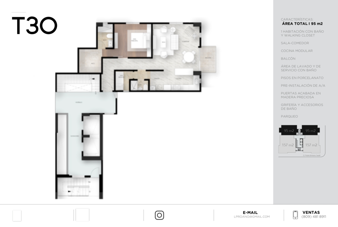 Este Conjunto de Habitacional se levantará en una estructura acorde con la modernidad, emplazado en una vía principal del sector. T30 residences estará a pocos pasos de importantes vías de la circulación como la Ave. Winston Churchill y la Ave. Abraham Lincoln.