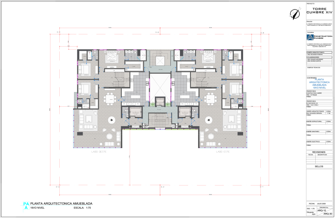 El proyecto consta de 34 Apartamentos de 252 m2 y Dos penthouse de 487 m2, son dos torres conectadas que funciona como un apartamento por nivel los parqueos son totalmente techados, ademas de incluir parqueos exclusivos para visitantes, cabe recalcar que cada conjunto de apartamentos, tendrá incluido pisos en mármol y terminaciones de preciosa madera en puertas y tope de cuarzo en las cocinas. Dandole asi un estilo refinado y a acogedor.