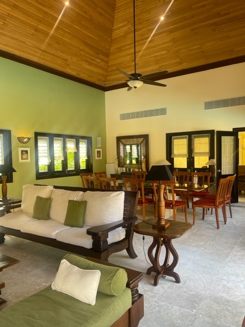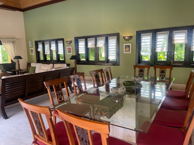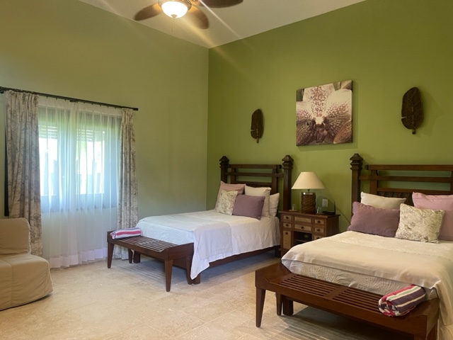 Preciosa y tranquila villa ubicada en una de las mejores y exclusivas áreas de la Republica Dominicana.Este condominio cuenta con 5 espaciosas habitaciones totalmente amuebladas y preparadas, que constan con su propio baño y closets estilo walk-in, la villa no solo trae fantásticas habitaciones también posee una gran gama de atributos lo cual harán que no quieras salir de esta:Área comúnPiscinaGazeboLoungeGimnasioÁrea para BBQSeguridad 24HServicios de cocina y mantenimientoSaunaPara aquellos que les gusta la actividad Física y acuática, La piscina cuenta con un sistema de propulsión para nado estacionario además de su propio gimnasio equipado. Y qué mejor que después de hacer actividades tan desgastantes, poder relajarse cómoda y pacíficamente en el mismo lugar, ya sea en el sauna ubicado cerca de la piscina o en tan esplendido gazebo que posee la instancia para relajar el cuerpo y la mente.